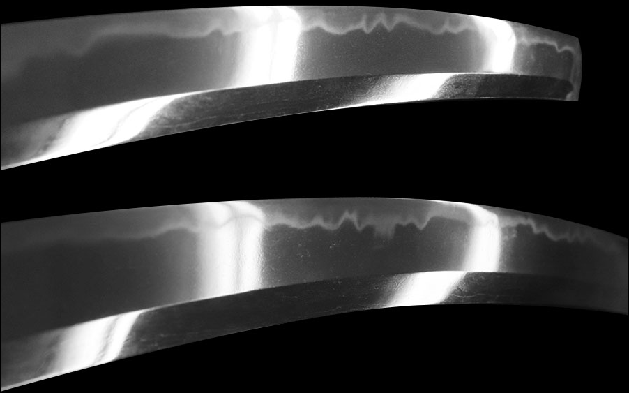 本篇作为古刀期五传的后续部分简单的介绍下五传编织的古刀期结尾 刀剑的制作特点与历史因素息息相关,日本刀剑在平安时期开始陆续确立了五个锻冶传方,五传一度影响了日本刀剑的制作思路。幕政历史的兴衰导致五传因各种因素先后退出了历史的舞台。在室町中期到安土桃山时期制作的刀剑,处于古刀期的末尾部分,被称作末古刀期。末古刀期所处的战国时代对于刀剑的需求暴增,一时间刀剑丧失之前的审美情调,很大程度上单纯的作为单兵装备而被源源不断地生产着。 末古刀在和镰仓时期的古刀进行比较时,已然没有了平安末期传承下来的典雅。在大环境需要赶工的前提下,一时间刀剑作品难分优劣。锻造简易粗糙,刃文布局潦草,茎部加工毛躁,铭文格式 字体一致的量产物在这个时间段比比皆是。为了满足实战及后期修补刀身开始加厚,但又不乏重金订做的名品佳作。优品与次品混杂在一块儿,颇有鱼龙混杂的趋势。 末古刀的代表之一便是赫赫有名的室町时期的长船锻冶了,也称作末备前。泛指永正元年(公元1504年)~文禄元年(公元1592年)时期的备前锻冶产品。由于室町前期幕府有着明日的勘合贸易政策,并把刀剑产地定在備前长船,所以进入战国时期的长船锻冶,有着大批量的生产供应战争的刀剑的基础。长船地区出现了以祐定与清光为主的品牌铭锻冶群。为了区分大品牌下的独立性,末备前刀工开始采用“俗名入”的方式来为自己冠名。其中“祐定牌”刀工以大永~天文年间与三左卫门尉祐定为翘楚,清光牌刀工以天文年间的五郎左卫门尉清光为最优,与三左祐定和五郎左清光为末备前双壁。   (以直刃 乱刃皆上手而驰名第一的与三左祐定) 彼时长船锻冶里用过祐定铭的刀工有几十人之多(有铭鉴统计为六十八人),一时间“祐定”成为了室町时期備前刀的代表。其中与三左卫门尉祐定的综合实力最高,以创新的蟹爪丁子刃、高超的直刃为典型,身幅广、厚,先反明显,有着十分强壮的身姿。是祐定中的祐定,代表中的代表。五郎左卫门尉清光的作品更是为名人所爱戴,例如战国时期的枭雄毛利元就在严岛合战之际,佩戴着五郎左清光阵太刀并取得了全胜,因此清光带有了胜利的名声。在明治维新时期,桂小五郎的爱刀也是五郎左清光。五郎左清光保护陪伴着桂在全国各地游走,最终促成了维新大业的成功。五郎左清光的作品多烧直刃,有着镰仓时期青江派的风情。精良致密的地铁、沸匂同现清晰的刃口、符合时代特点厚重豪壮的刀姿,无不是精品的体现。俗名入的个性化子品牌是容易引起客户群体的关注的,因此俗名入刀工制作品往往多带有订作者名字的“注文打”现象。此外值得一提的是:“宗光 胜光”、“忠光”、“春光”、“贵光”、“祐光”等都是末备前时期声名显赫的刀工(群)。