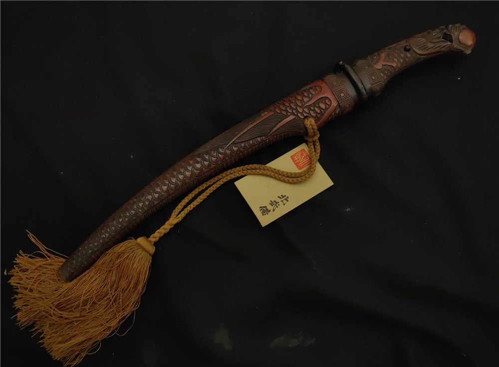 含鞘全长50厘米.刃部长25.6厘米,最厚处1.05厘米,含鞘重339.7厘米。