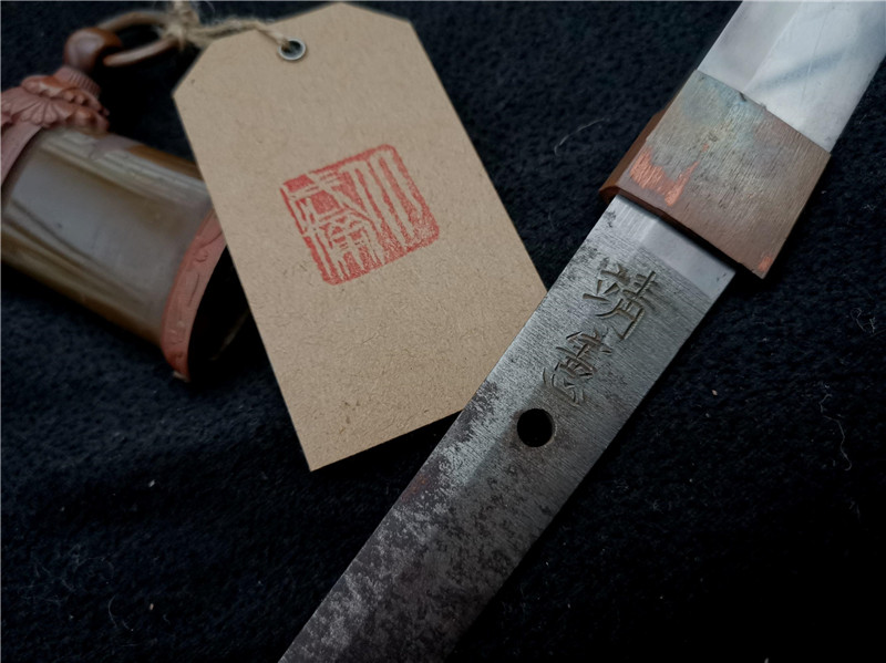 数据: 全长~含鞘全长96厘米 刃长~刃长69.1厘米 元幅~元幅2.95厘米 先幅~先幅2.05厘米 元重~元重0.75厘米 先重~先重0.6厘米 靖宪本名叫小谷宪三 1909年生于广岛,作为执行主任 靖国刀匠里主任梶山靖德的助手,1933年时就进入日本刀锻炼会了,1935年7月开始锻刀,曾有刀铭为“靖宪”“武宪”(梶山靖德的刀铭也为“靖德”“武德”)十年期间加起来共锻造1600口优质的刀剑 ,这个数量可能听起来很多很多,但经过军队千万人的稀释,将领指挥的收藏,战场上的损毁缴获,所剩之物寥寥无几, 保存状态优异的更是凤毛麟角 。1933年由栗原昭秀为技术核心起草的日本刀复苏计划得到了议院的支持,翌年由他本人做技术总监的日本刀传习所和开在东京九段靖国神社内的日本刀锻炼会先后奠基。 这支靖䜢特注装具保存状态极好,柄绳完整包鱼皮,卡榫闭锁灵活有力,入鞘带响闭锁功能完好,鞘无凹原漆保存百分之九十五以上,刃部完整无伤刃纹清晰,表面有来回出鞘留下的磨痕(近百年的东西瑕不掩瑜)余下完美,铭文漂亮,这支靖䜢整体状态极品,刀身锻造比较纤细,装具早期镂空寿屋兵工厂制作(特铸装),符合将官佩刀标准,绝对是不可多得的精品入藏级别藏品! 栗原昭秀在招募民间的名工安排进传习所的同时,也把锻炼会的要务交给军部管理 ,高质量的招募筛选使得锻炼所这批名工都有了统一的铭切格式,都是以靖国神社的“靖”或崇尚武道的“武”为铭头 这批名工所做的刀也被叫做靖国刀或九段刀,靖国刀的制作理念和传习所那边的传统锻炼大抵相同 ,由于军事化的管理和师徒制的明确分工,使得其质量 效率 执行标准,产品定位相较于传习所那边更有着整齐严谨的军队气质。 靖国刀全部采用传统工艺的制作流程,所以在产量上一直没有很大的提升,从1934年奠基成立到1945年战争终止 ,靖国刀匠前前后后才赶出来八千一百多支刀剑来,又因为其产品定位的特殊性 靖国刀在战时往往作为军校高材生或在任军官的奖励 由天皇为代表的军部省作为恩赐的礼物赠答给军国主义奉献的“有志青年”所以靖国刀里出现恩赐刀 御赐刀的机率是很大的, 这样的因素也使得靖国刀一刀难求 ,战时亲付战场的将士 采买武备的军官 都希望能拥有一支靖国刀为军旅生涯的最高荣誉。 今日北武备特别推出一支靖国刀里的精品与好朋友们共赏,本刀乃是靖国里排位靠前的名工 靖宪所作的一支娟秀清丽的上品 。 北武备收藏这只靖宪制作水准已无需多言,作为锻冶总工靖德的得利助手其制作功力完全无可挑剔,其锻造精密 其烧刃素养,如果不看茎铭信息仿佛如后期精心修饰的造兵刀一般干净利落,茎的处理也是一丝不苟 ,看不见的地方同样做了精心的修整 ,楷书铭切的工整錾刻更是体现了高质量,高品位的制作态度 。 可以说这样一支精工细作的刀剑要不是有制作年紀作为衬托,是难以相信是诞生在战火纷飞的年代的,此刀长短合理配重优异,在强调高超的细节技术同时并没有忽略了好用好带的本质问题,此刀无论是作为战争的特殊纪念品,还是作为一支近代美术刀剑复兴的初期作品,都是个不错的选择。 此外更附有几近如新的九八式军刀拵,此拵应该是经历过战场的恶劣环境而使得国防绿色的光泽鞘表面稍有剐蹭 ,其余完好如初,柄卷更是弹力尚佳没有严酷的使用 所有金具还保留着当年新做时的镀涂漆艺 ,这规整的样式和清晰的图案 是当时服务以天皇为代表的军部专属配件制作商寿屋商店的得意之作。 寿屋商店在明治六年(1874)时就开始服务明治天皇的军部军属配件制作了, 在二战之后更是一度将精益求精的态度发展到玩具业上 ,时至今日已然是高品质玩具的代表名词 。 此刀的装配金具和柄木的截面都有数字一致的编号,根据茎铭的年纪可得知1938年时军刀的需求已然开始提升, 高质量的装配也开始高产量起来, 手工配合带来的细微差异不能完全的贴合批次生产的量产部件,所以这也是这只刀为什么装配部件要写上编号 至今还可以拆装自如但又严丝合缝的关键条件。 这么一支保存优秀的拵付靖国刀本身已然难能可贵,但想想此类刀剑曾经的佩戴者哪个不是位高权重的侵略军官 ,值得警醒的是此物能被我们收藏珍视,不仅仅是出于对冰冷钢刀的热血柔情,更是对冷酷历史的温情回忆!!