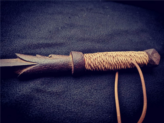 数据; 全长77.1厘米,锏身长61.6厘米,铁雕龙吞长7.5厘米。 这支明代一体铁雕龙吞锏整体锻造后在手工打磨成型,整体做工异常规整,柄首为铁雕八宝,铁雕龙吞7.5厘米长,嵌铜眼,造型呆萌古意盎然,龙吞游丝线雕纹饰,龙鳞牙齿基本清晰可见,锏身饱满,菱形由粗渐细,虽然有一点锈蚀,但是整体状态非常棒,骨子硬朗坚实,这支铁雕龙吞锏原始状态没有任何动手整理过,因为原主人对此锏非常喜爱,经常拿在手里盘玩,所以图片中可以看到锏身包浆下有红锈,这种包浆会给一些初级收藏爱好者有所疑惑,但是实物却为傻开门的器物,再有这支锏一体锻造,用金属轻轻敲击锏身,声音非常好听,并且会有长久的共鸣产生,绝对是一支同类古兵器中的精品。 | ||||||||||
